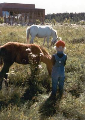 Vuosaari. Kiertävän sirkuksen eläimet laiduntavat Kallvikintien varrella olleella niityllä. Taustalla Vuosaaren uimahalli. Nykyisin tässä kohtaa on Rastis-talo. Sirkuksen eläimet olivat lapsille aivan vastutamaton kohde. [ID=13299/sirkus2_m.jpg] |