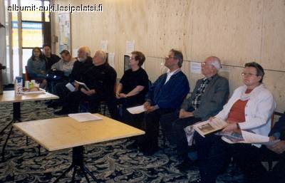 Yleisöä Albumit Auki -näyttelyn avajaisissa Kontupisteessä 8.5.2003. [ID=13761/nayttely.jpg] |