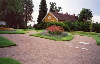 Annala, Villa Anneberg, heinäkuussa. Kuvassa näkyy päärakennuksen edessä olevaa 1800-luvulle tyypillistä muotopuutarhaa. Huvilan perusti kauppaneuvos Gustav Otto Wasenius kesäpaikakseen 1820-luvulla. Villa Anneberg on yksi Helsingin noin kahdestakymmenestä kartanopuistosta. Annalaan kuuluu päärakennuksen lisäksi useita asuin- ja talousrakennuksia sekä luonnonkivestä rakennettu orangeria eli talvikasvihuone. Kuvassa on entinen puutarhurien asuintalo. Kartanopuisto on rauhallinen levähdyspaikka niin helsinkiläisille kuin matkailijoille. [ID=23370/tsaa209m.jpg] |