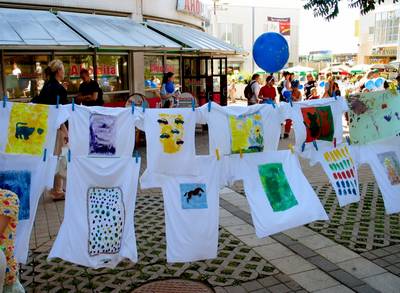 Lasten koristelemia t-paitoja SkiDiUP! -lasten kulttuuritapahtumassa. [ID=27212/skidi008.jpg] |