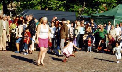 Helsinki-päivänä 2005 Rautatientori nappulaikäiset innostuivat antamaan oman esityksen ennen varsinaisen ohjelman alkua. Vasemmalla Brasilian suurlähettiläs. [ID=27658/mapo331m.jpg] |