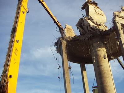 Vuosaaren vesitornin "säiliön" pohja on puoliksi purettu. [ID=27702/PICT0037.JPG] |