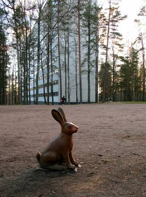 Yksinäinen pupujussi Kiikun leikkupuistossa auringonlaskun aikaan. Taustalla Keinulaudantie 5:n läntinen talo. [ID=27949/kontula_3m.jpg] |