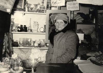 Kuvalähteen äiti Ida Kesseli "divarissaan".